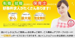保育士ジョブは、保育士・幼稚園教諭専門の転職支援サービスとして、全国の保育施設との強いネットワークを活かした求人紹介を行っています。特に地方の求人に強く、UIターン転職を希望する保育士の方に人気があります。